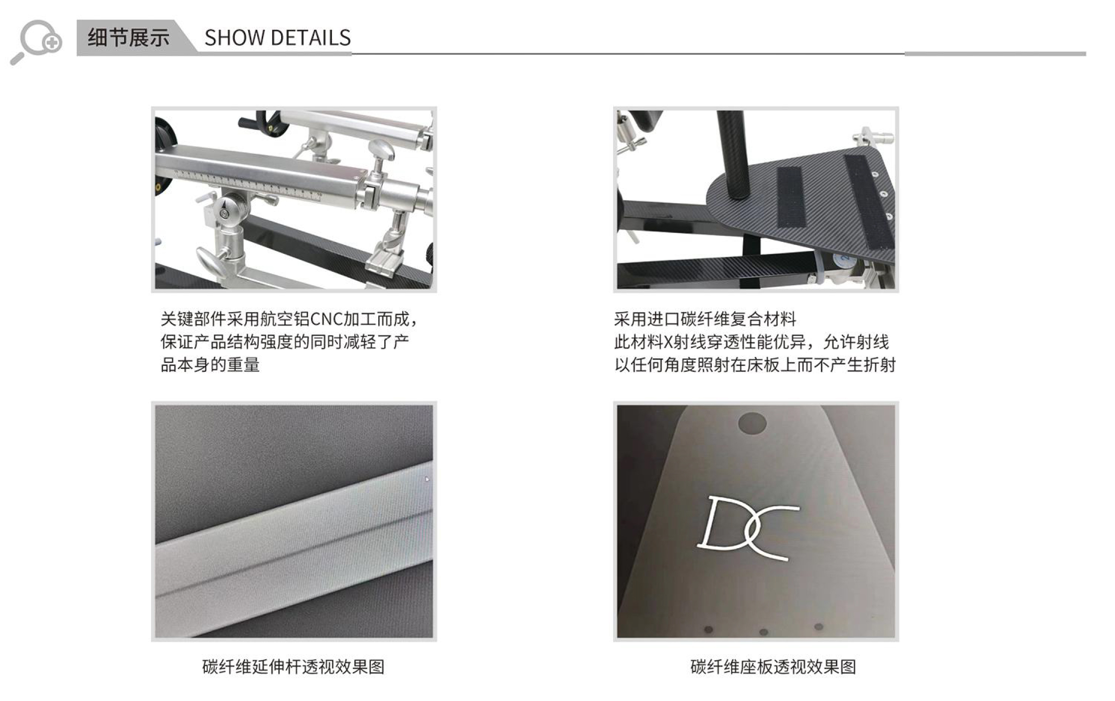 (2)優(yōu)異的X射線透過性:碳纖維材料對X射線具有極好的透過性,這意味著在手術(shù)過程中,醫(yī)生可以清晰地通過X射線進(jìn)行透視和檢查,而不受牽引架的干擾。這對于確保手術(shù)的精確性和安全性至關(guān)重要。